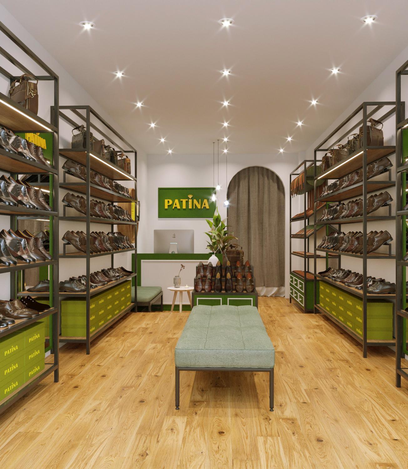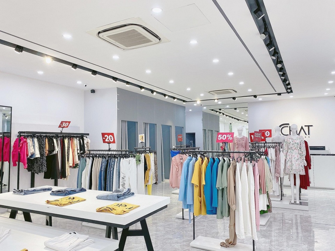 Hệ thống giá kệ, đèn chiếu sàng làm nổi bật không gian cửa hàng