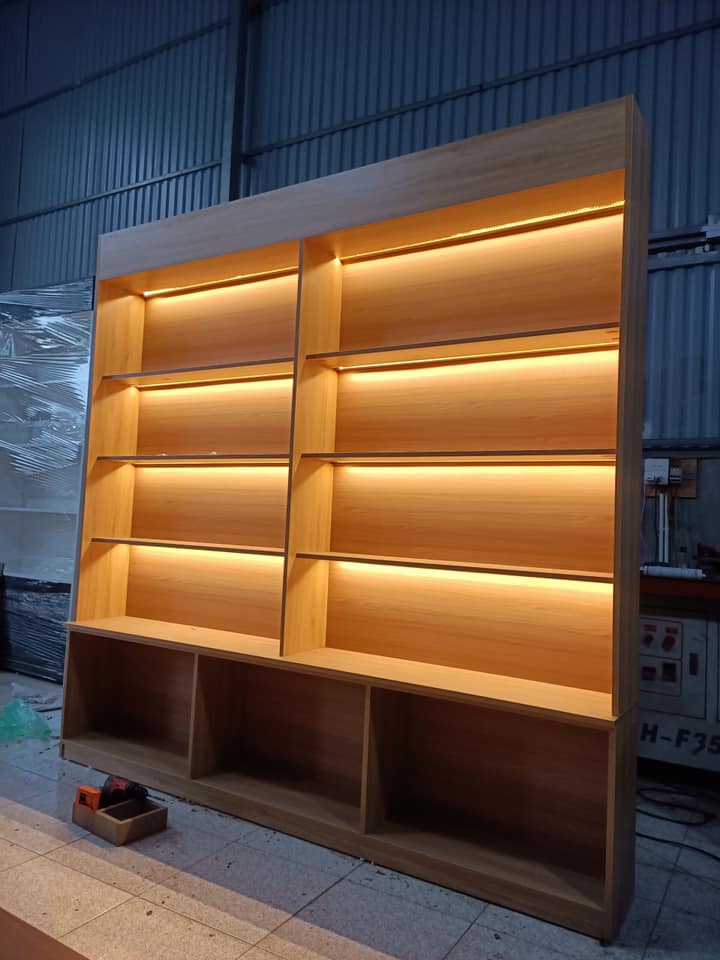 Hệ kệ ôm cột tối ưu không gian kết hợp đèn led tạo điểm nhấn cho sản phẩm của bạn