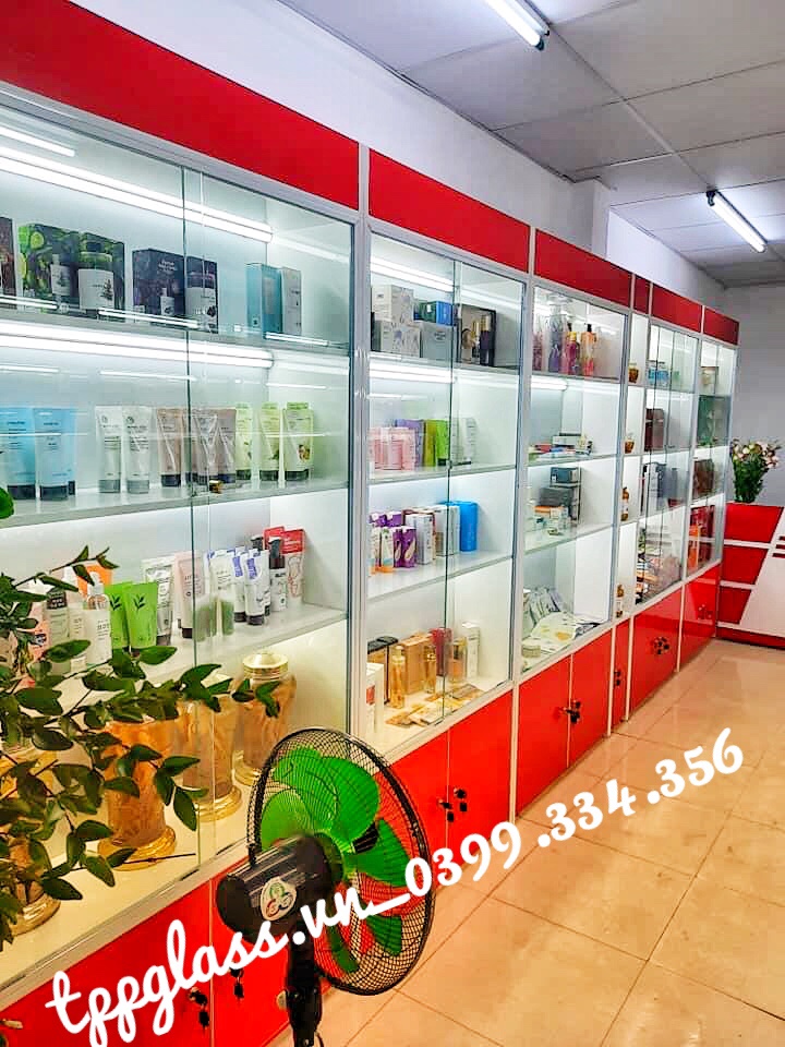 Tủ kính trưng bày mỹ phẩm sang trọng