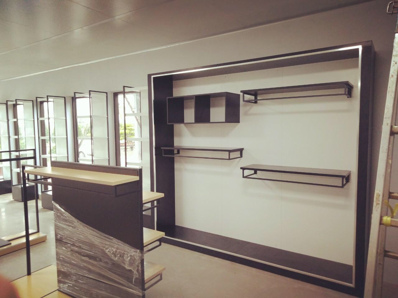 Đối với các shop quần áo thì kệ trưng bày là một vật dụng không thể thiếu. Cửa hàng của bạn sẽ trở nên ấn tượng hơn với những kiểu kệ trưng bày được thiết kế một cách độc đáo như thế này. Ngoài ra việc thiết kế thêm hệ thống đèn cũng giúp những sản phẩm trong cửa hàng trở nên bắt mắt và thu hút khách hàng hơn. Bước vào cửa là đã cảm nhận được sự thoải mái trong phong cách bài trí của shop rồi.