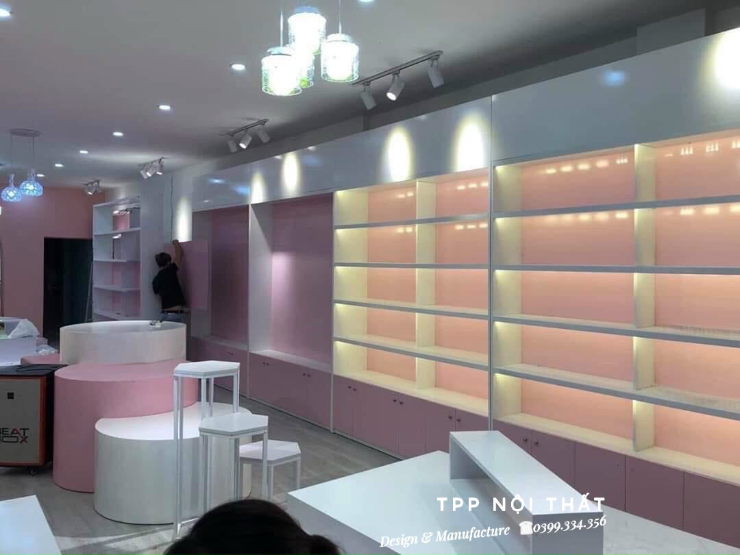 Kệ trưng bày mặt hàng mỹ phẩm sang trọng