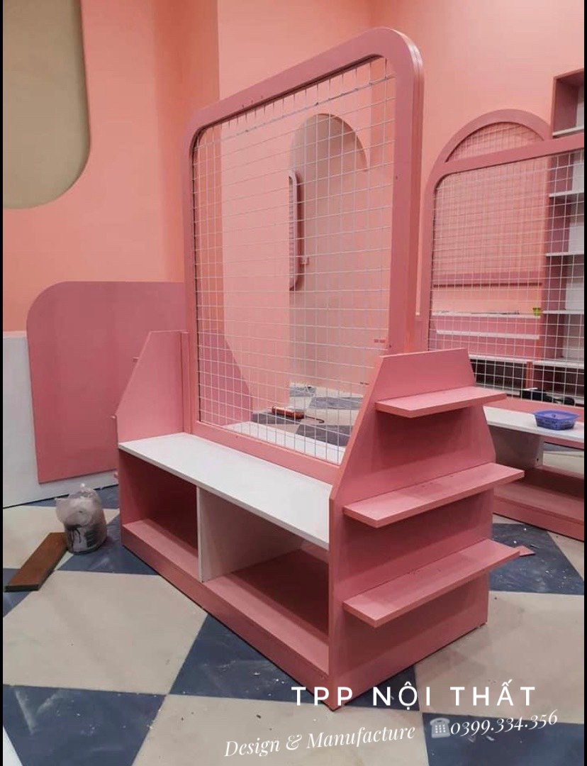 Thi công, lắp đặt kệ tủ trưng bày giữa nhà cho cửa hàng mẹ và bé