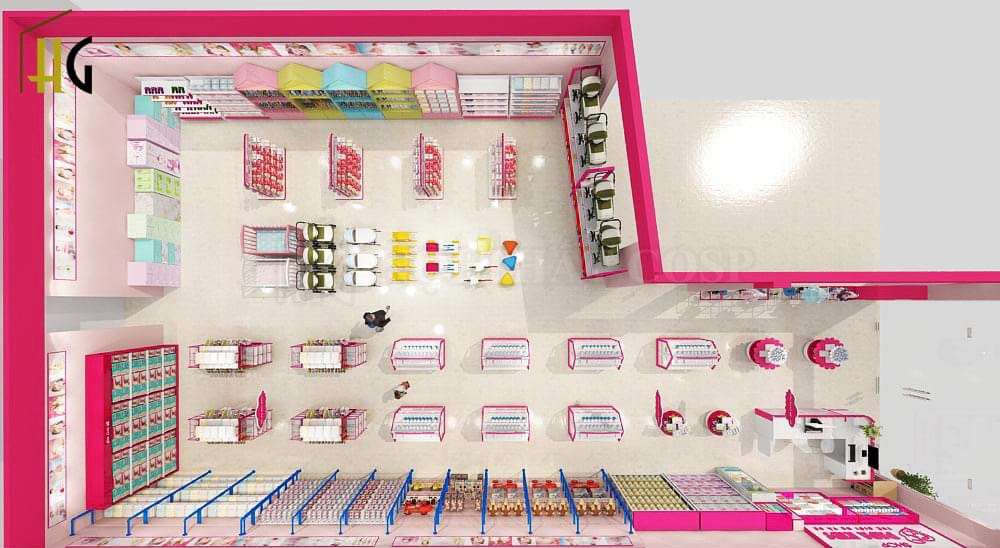 Mô phỏng cách bố trí cửa hàng mẹ và bé