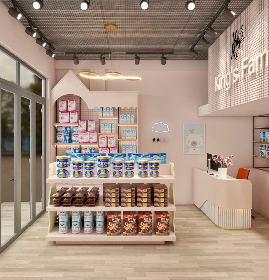 Đa dạng kệ trưng bày cửa hàng mẹ và bé
