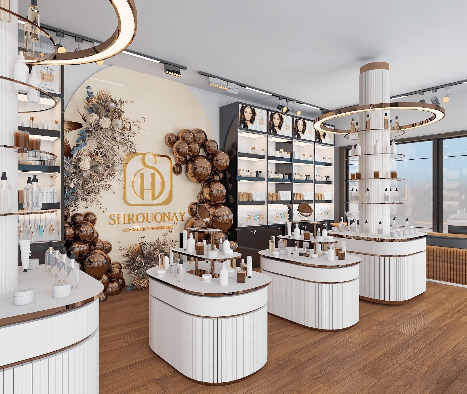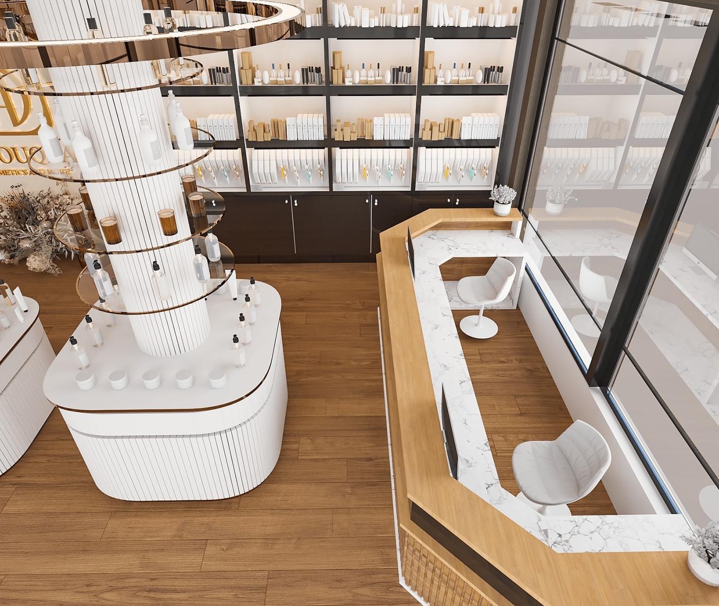 Nội thất shop mỹ phẩm tại Hà Nội với tông màu ấm áp vô cùng sang trọng