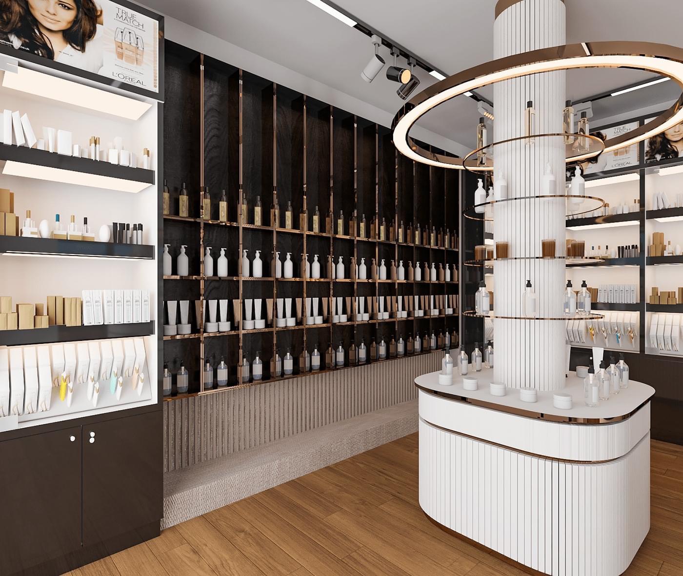 Thi công nội thất shop, cửa hàng mỹ phẩm, tủ kệ mỹ phẩm tại Hà Nội theo phong cách sang trọng