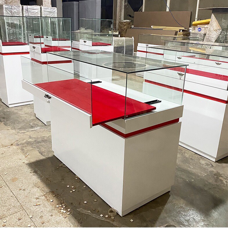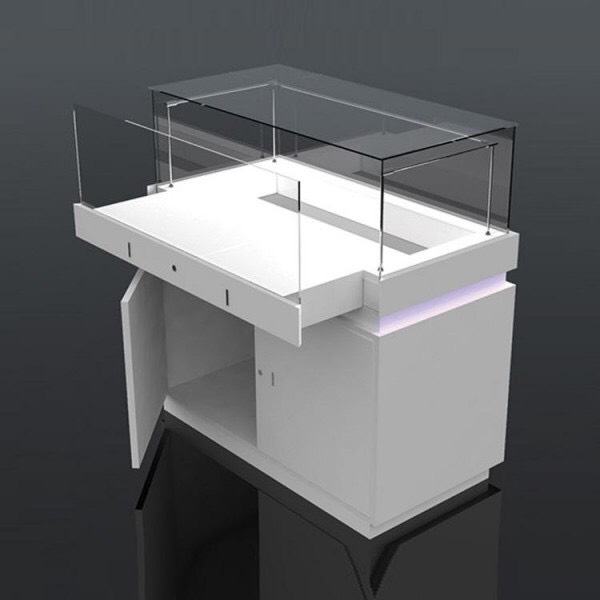 Tủ, kệ trưng bày mỹ phẩm mặt kính với hệ thống đèn led làm nổi bật sản phẩm