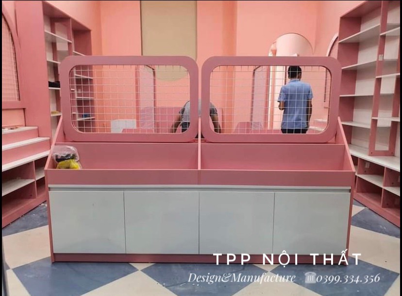 Xưởng nội thất chuyên sản xuất thiết kế tủ kệ trưng bày shop mỹ phẩm