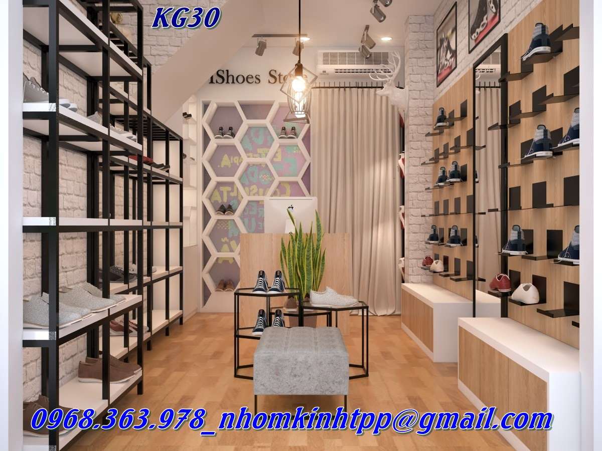 Mẫu thiết kế khung giá kệ shop giày dép đẹp