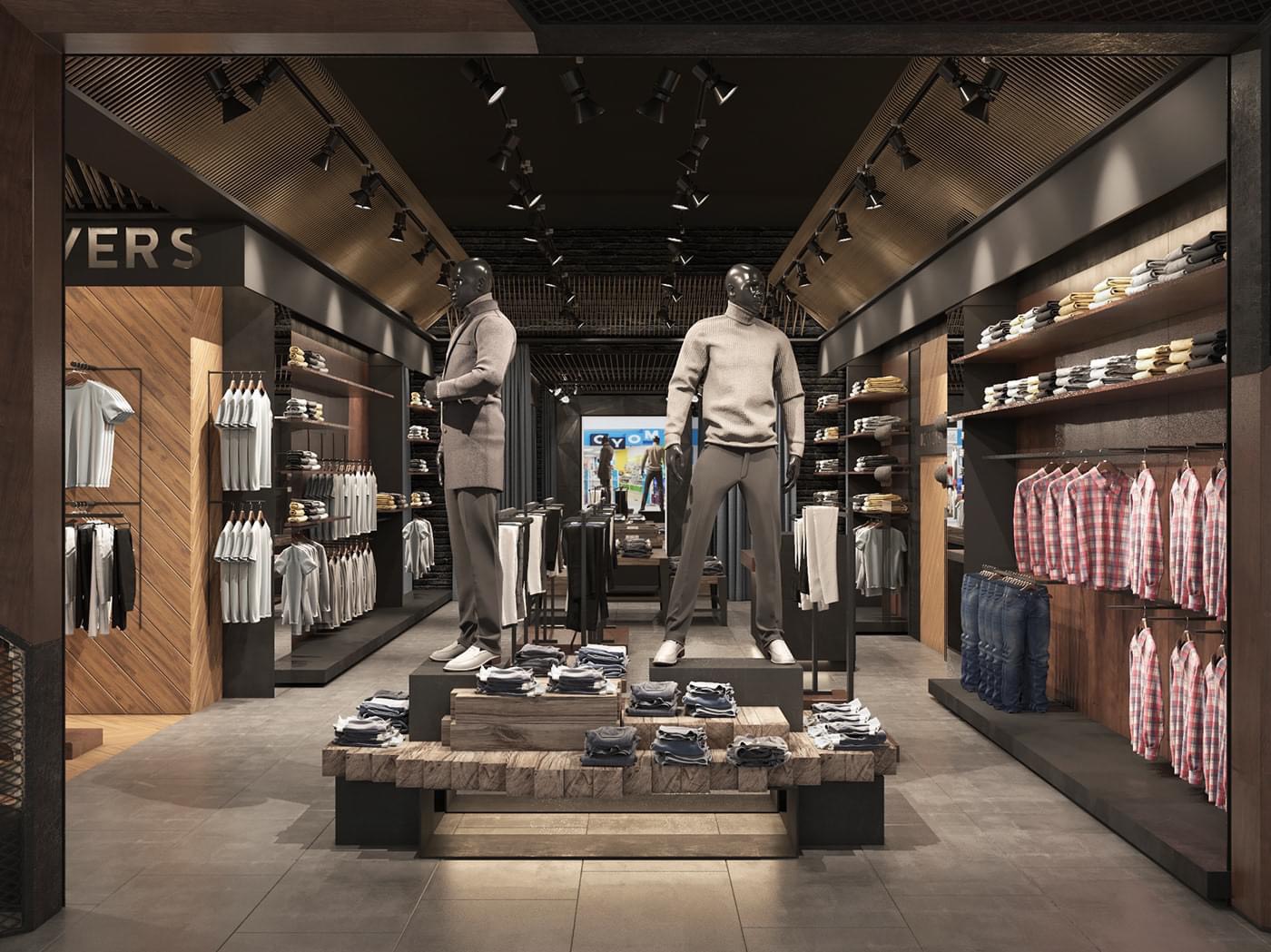 Kệ trưng bày quần áo nam phối cảnh 3D_mẫu GT06