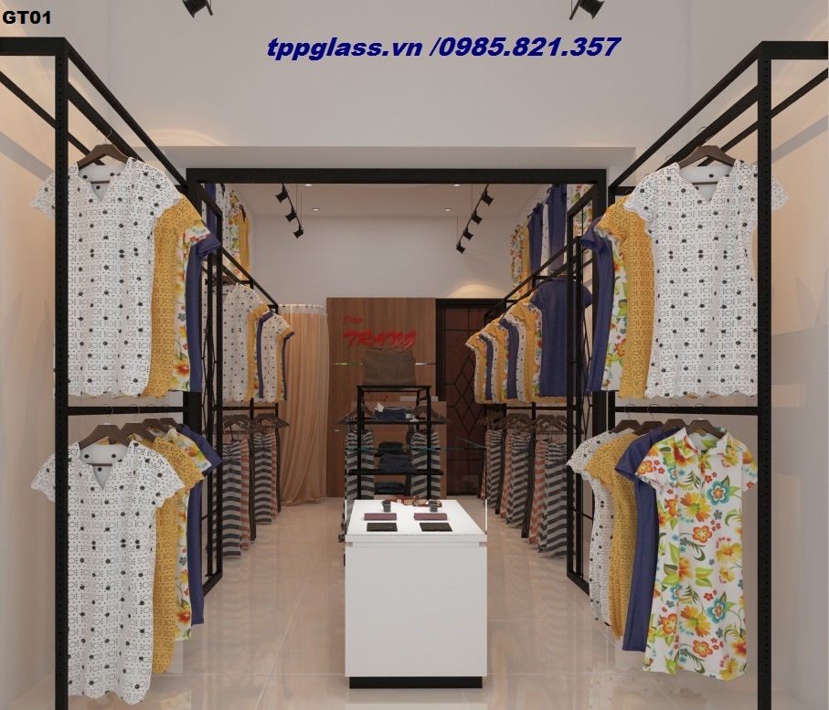 GT31_giá kệ trưng bày shop thời trang bằng khung sắt hộp đặt sát tường