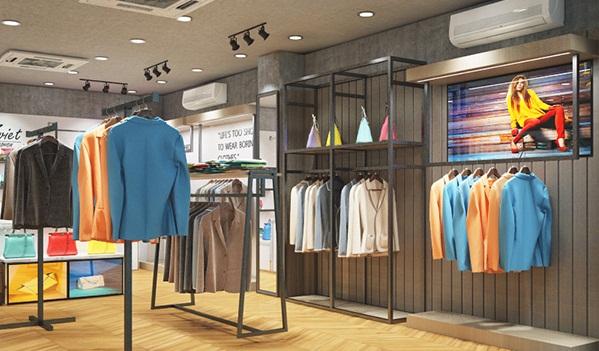 Kệ trưng bày trong không gian mặt bằng shop thời trang