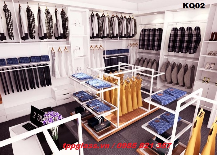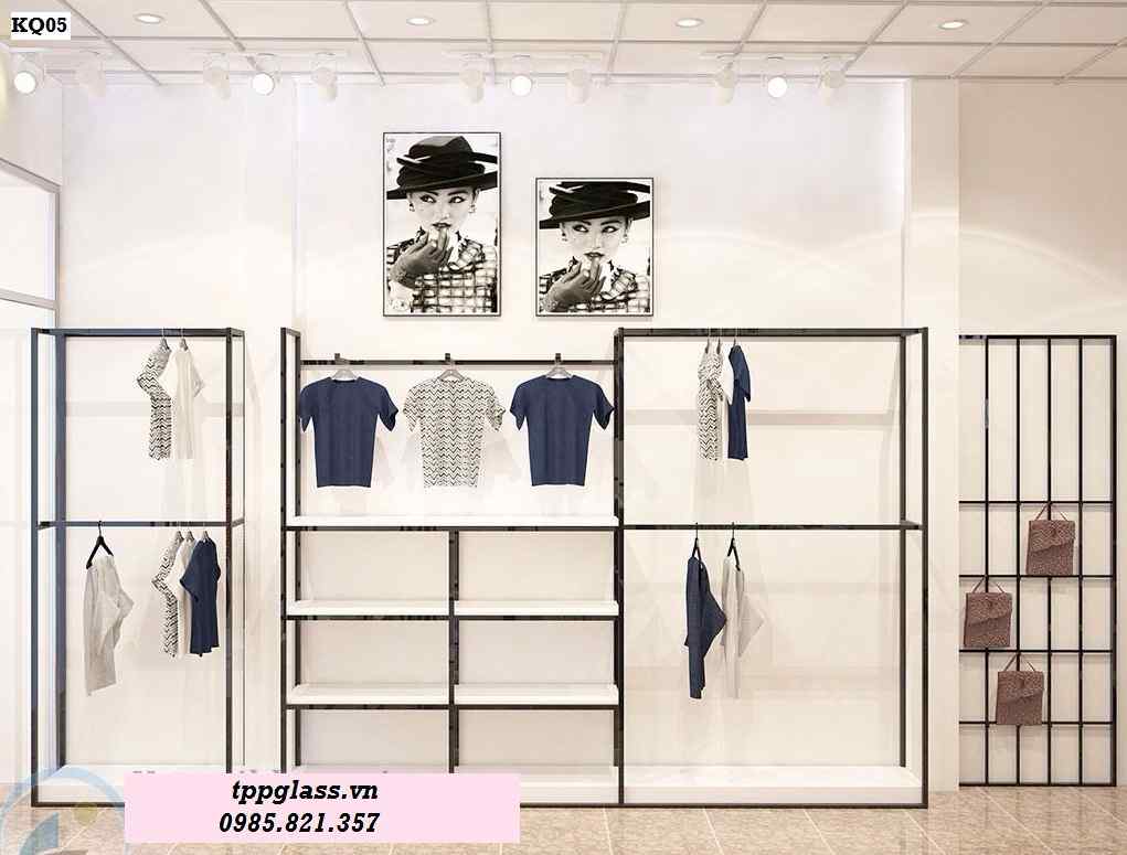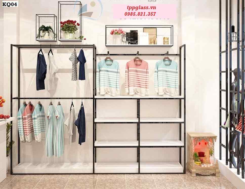 KQ01_giá treo kết hợp kệ trưng bày cho shop thời trang công sở