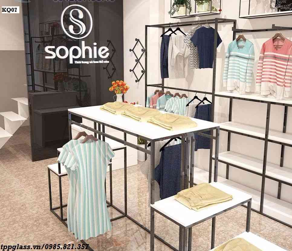 Chiếc kệ trưng bày shop thời trang kết hợp giá treo cho gọn gàng cửa hàng_KQ04