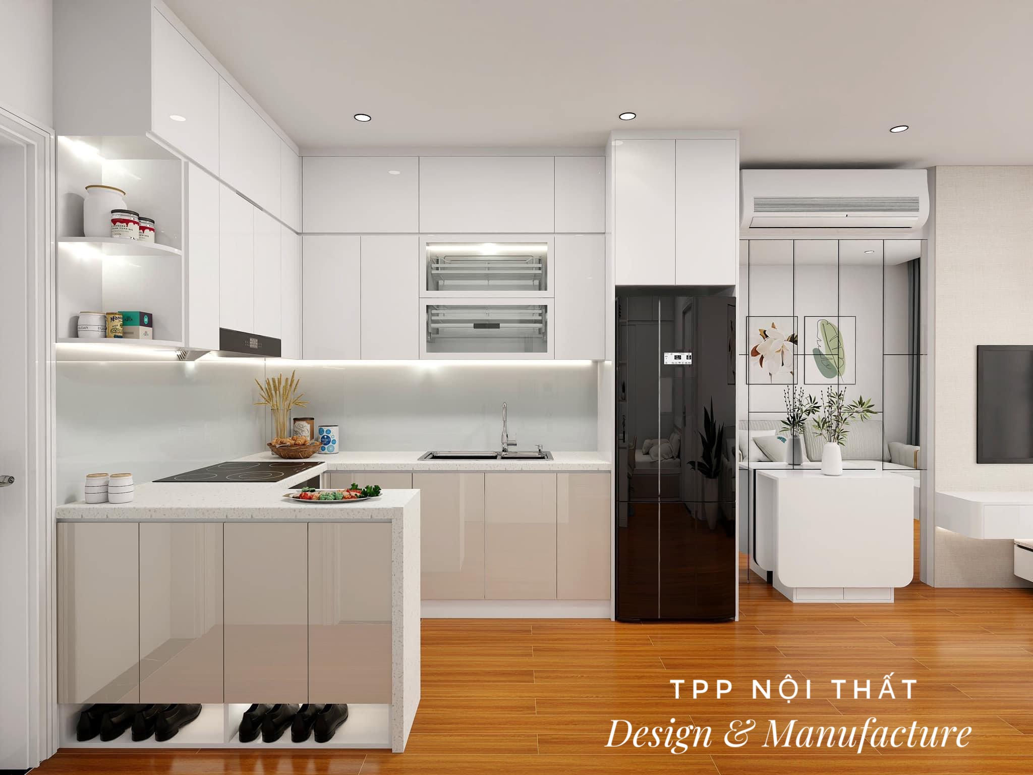 Thiết kế, thi công nội thất phong bếp căn hộ 54m vuông Vinhomes Smart City