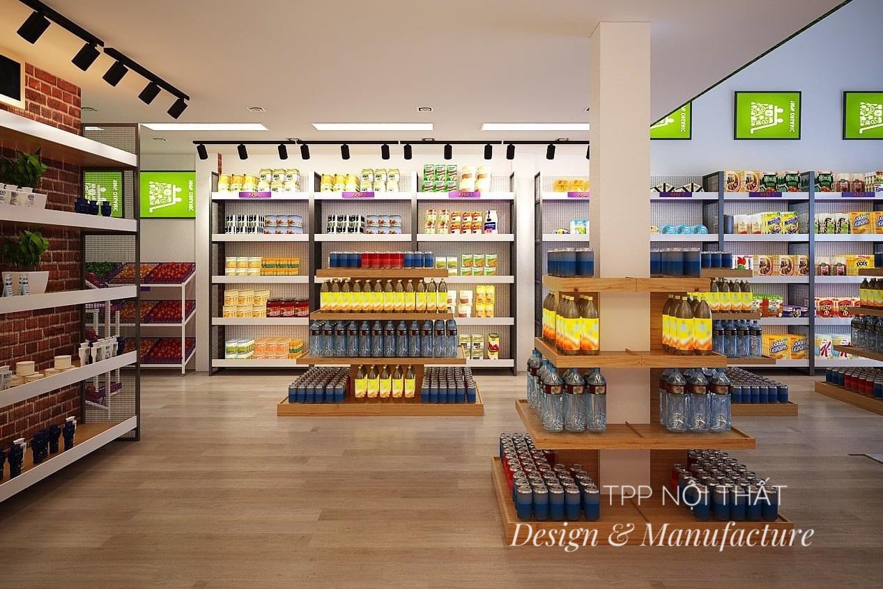 Hệ thống tủ - kệ trưng bày cửa hàng thực phẩm do TPP NỘI THẤT thiết kế và thi công