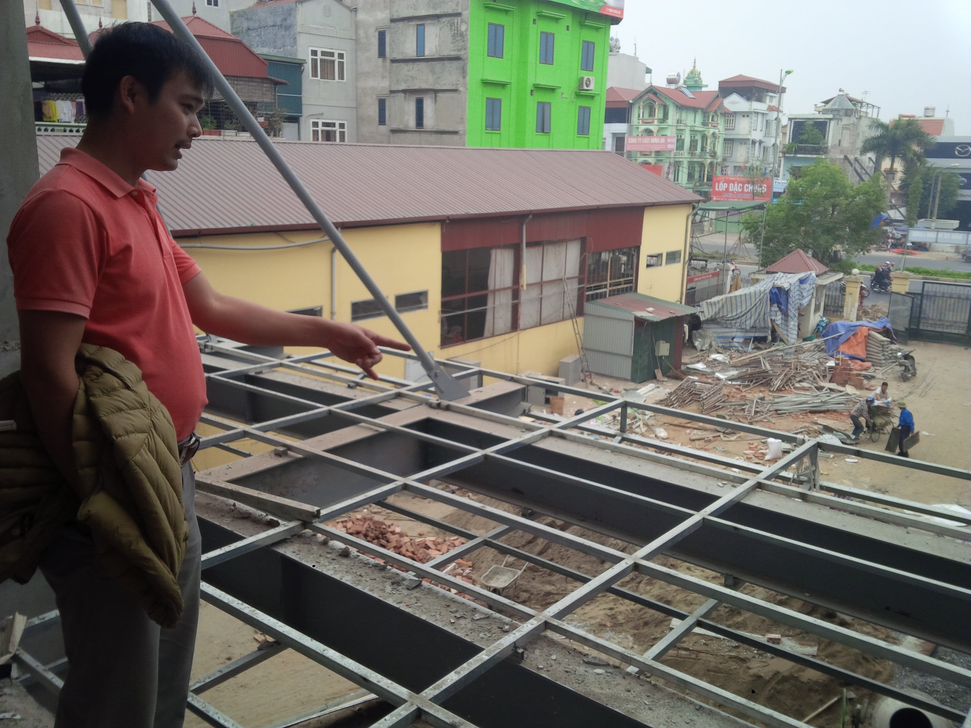 CEO Mr. Điệp (0985.821.357) trực tiếp chỉ đạo thi công phần khung mái sảnh