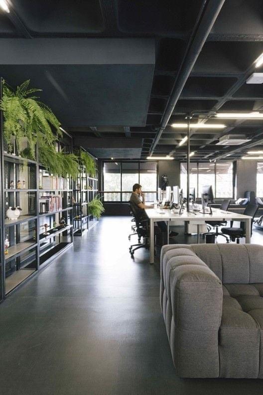 Không gian mở trong thiết kế nội thất văn phòng kết hợp kệ cây cảnh xung quanh tạo cho nhân viên cảm hứng sáng tạo cao hơn trong công việc