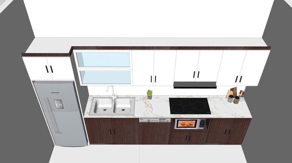 ✅ Tủ bếp chữ I: Dành cho căn hộ nhỏ, thiết kế đơn giản, tiết kiệm diện tích.