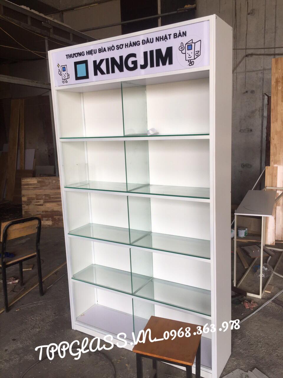Tủ trưng bày văn phòng phẩm được làm từ gỗ MDF kết hợp kính